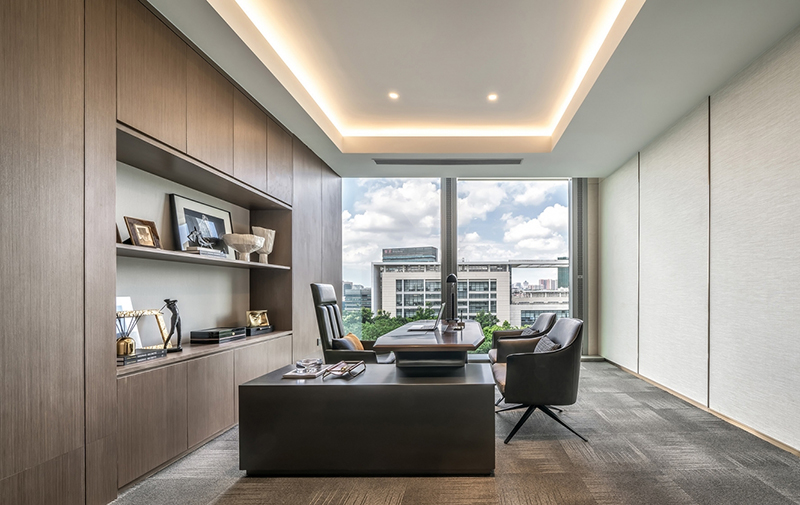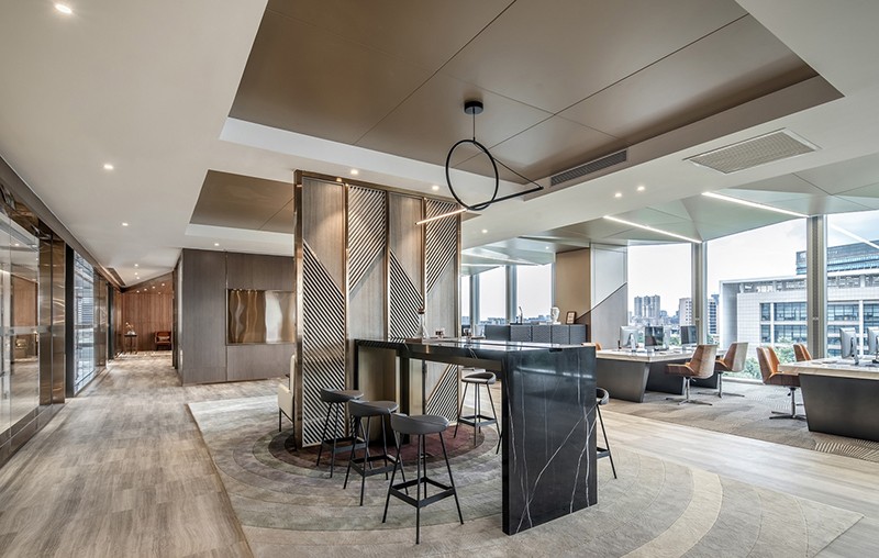 辦公空間的整體動線布局,以人為本。運用暖系色調融合啡色作為點綴,質感豐富,對比分明,體現了大都會的時代感。大氣及細致并存,將建筑與藝術結合,展現剛柔并重,美觀與實用兼備的辦公空間。