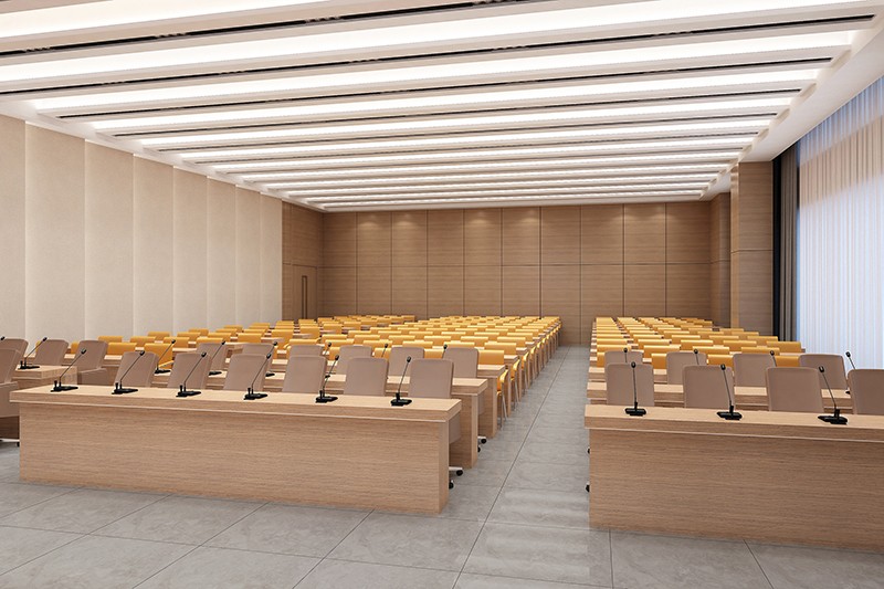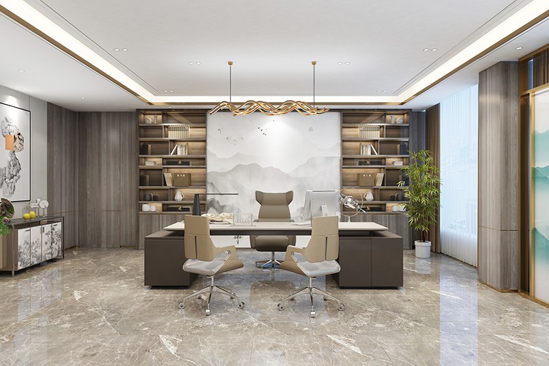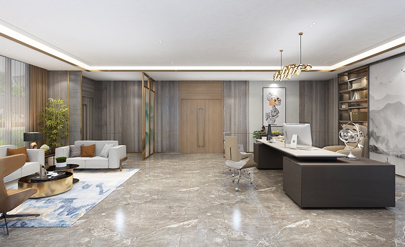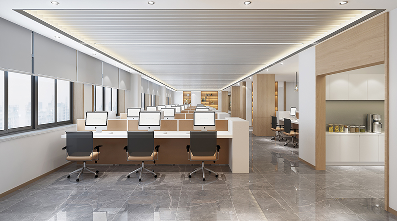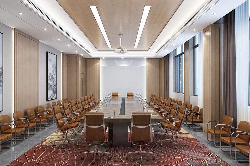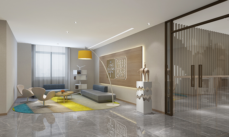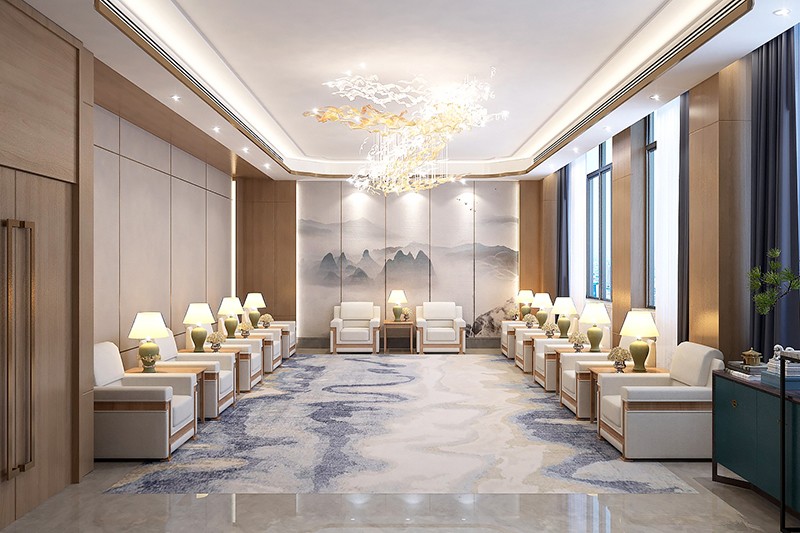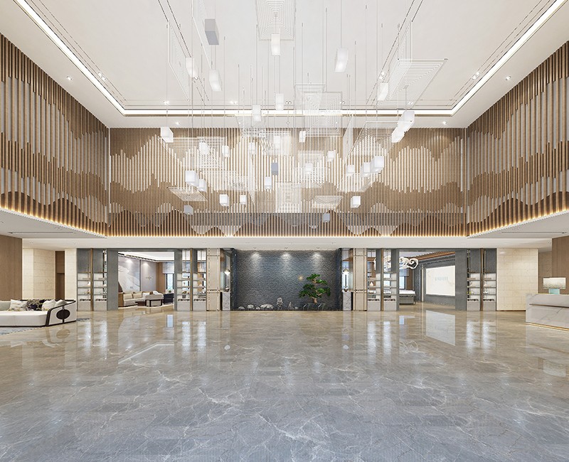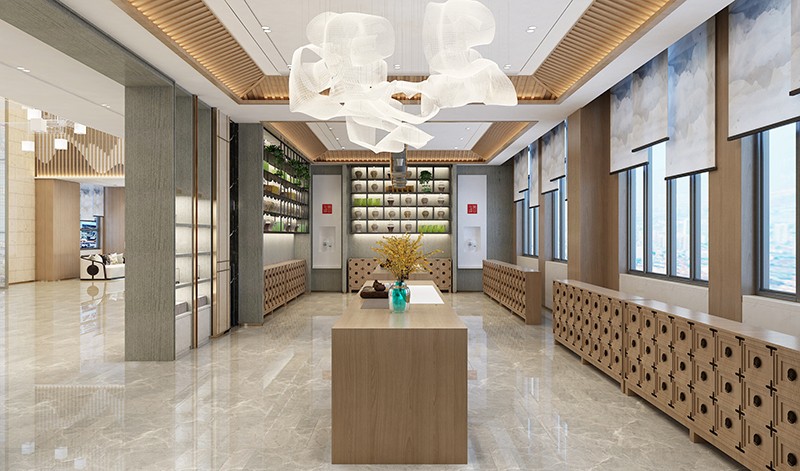 設計理念:該項目為藥業企業辦公樓裝修,整個空間裝修風格為新中式,選用木色作為主要色調,黑白色和金屬色描畫出輪廓,展現溫馨親和并且體現出作為辦公空間的大氣感。設計師在滿足基本功能需求的前提下,借助空間架構與細節設計,呈現空間的藝術性和當代性。該裝修設計項目是一個企業集團辦公樓內的餐廳空間,包括一層的員工餐廳和三層的餐廳包間。設計一樓的員工餐廳主要體現干凈整潔明亮的特點。大開敞的就餐空間采光明亮,簡潔而鮮明的內飾與環境自然融為一體。讓人在獲得無盡放松心情的同時,感受古與今的文化碰撞和獨樹一幟的品牌力量。包間的色調以灰白色、古銅色為主打色調,咖色原木色點綴,整個空間溫雅而舒適, 沉穩而大氣。