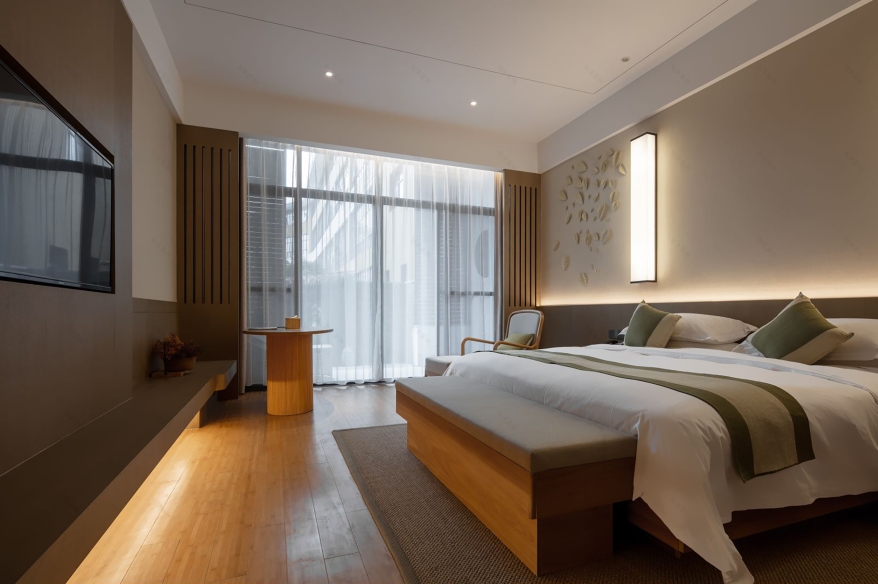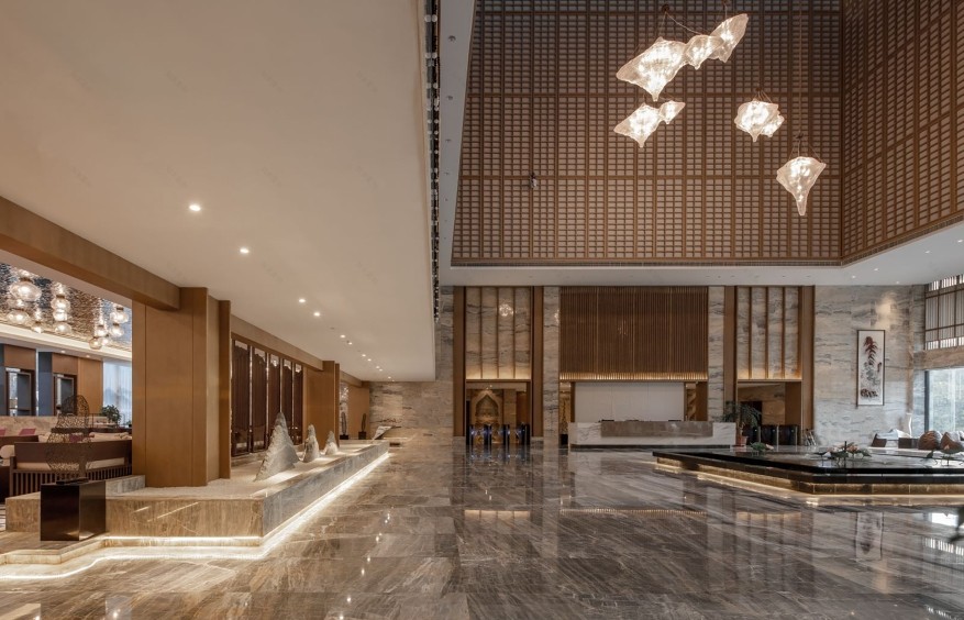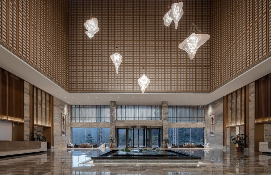 設計理念:大別山虛谷溫泉度假區,位于六安茶谷九十里山水畫廊。敦兮其若樸,曠兮其若谷,大別山虛谷溫泉采用國際視野、獨特構想,規劃打造一方青山碧水、宜居宜旅的現代化溫泉運動休閑度假村落——“一片森林、一汪湖水、一池溫泉、一幅畫卷。”設計主題來源于大別山及革命精神,傳承紅色基因,取此為點綴色調。山,沉穩、挺拔、高聳,秉承自然、古樸之意,東方美學與自然設計理念相結合。